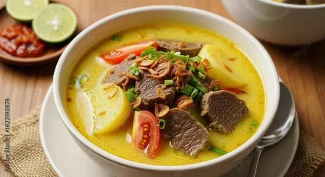 Soto Betawi tidak hanya enak, tetapi juga kaya gizi berkat penggunaan daging sapi dan rempah pilihan. Kuah santannya memberikan kelezatan yang khas dan membuat hidangan ini terasa lebih istimewa.
